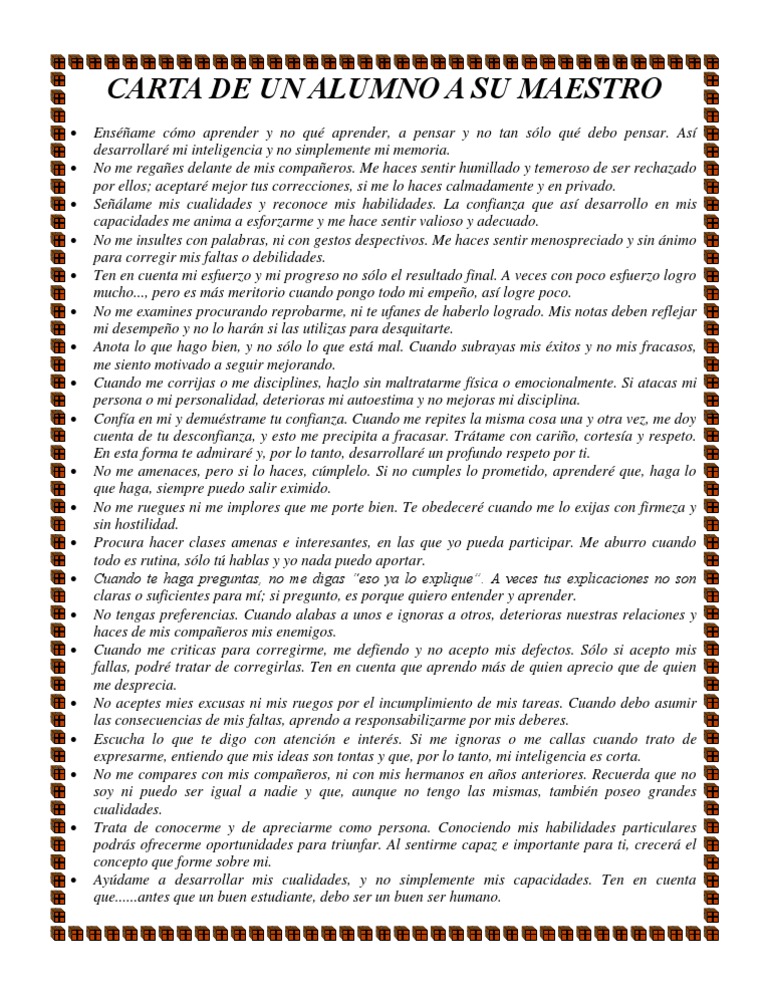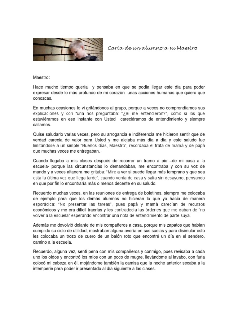 Carta De Un Alumno A Su Maestro